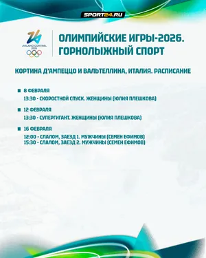 В горных лыжах наши заявлены не во всех дисциплинах. Было определено, что Плешкова будет участвовать в скоростном спуске и супергиганте. Ефимов же выйдет на старт слалома, где у него будет два заезда.